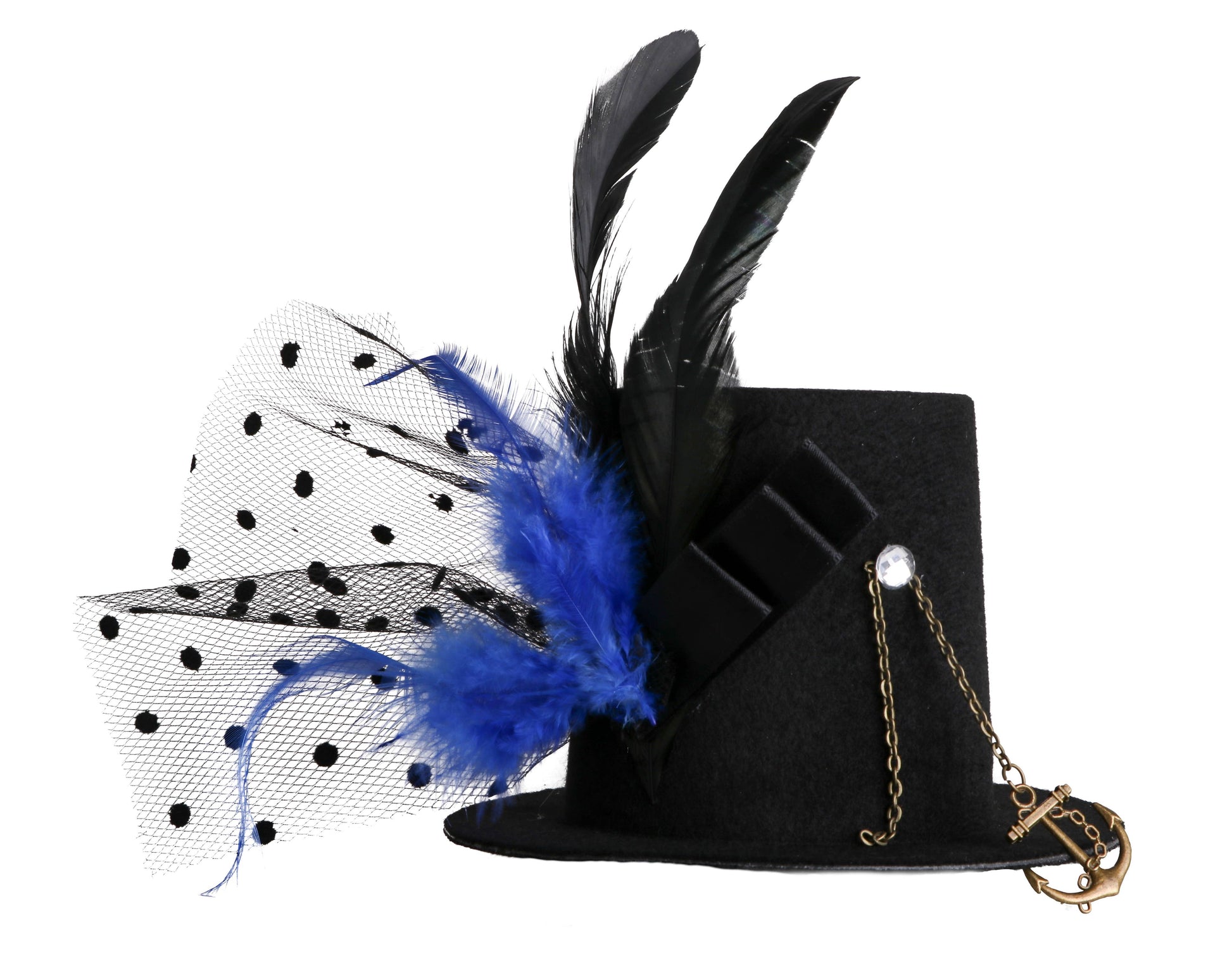 Steampunk Mini-Hat. Adorned with gears and feathers, it's a statement piece that adds a touch of whimsy to any ensemble. Ideal for raves, festivals, Halloween, and themed parties, this hat is more than just a costume accessory. It's a high-quality item that promises to turn heads. Elevate your look with our standout mini-hat!