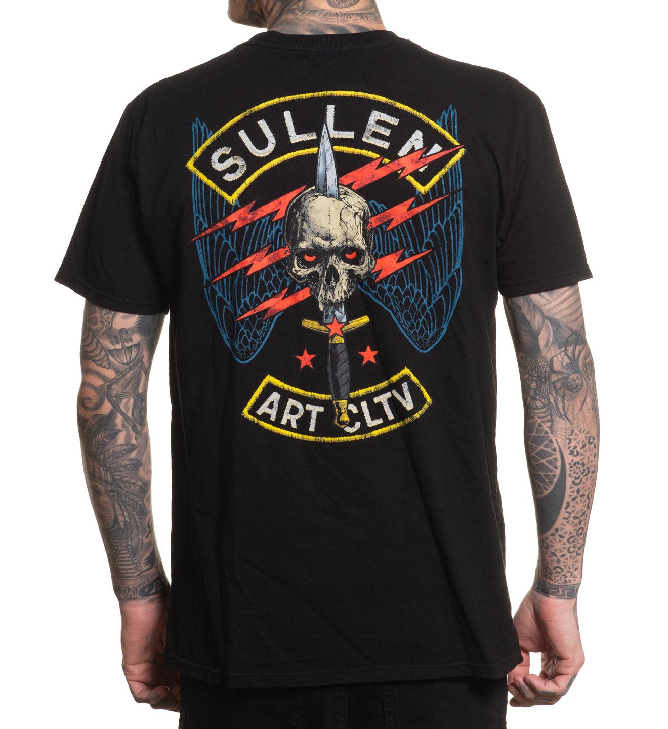 Black Angels details piercing eyes, cracked skull, and a dagger dead center, all framed by lightning bolts and wings that don’t play nice. Printed on our premium tee for a tailored fit and long-lasting wear, this one’s made for the ones who don't back down, blend in, or ask twice. Throw it on, don’t explain. * Premium Fit * Model 5'11 Size L - 175 lbs * 100% soft cotton jersey * Custom Dye Tee * Tagless for comfort * Machine washable * Set-in rib collar with shoulder-to-shoulder taping * Double-needle sleeve and bottom hem * Preshrunk to minimize shrinkage * Woven Sullen Badge label on left sleeve * Weight: 185g/m2