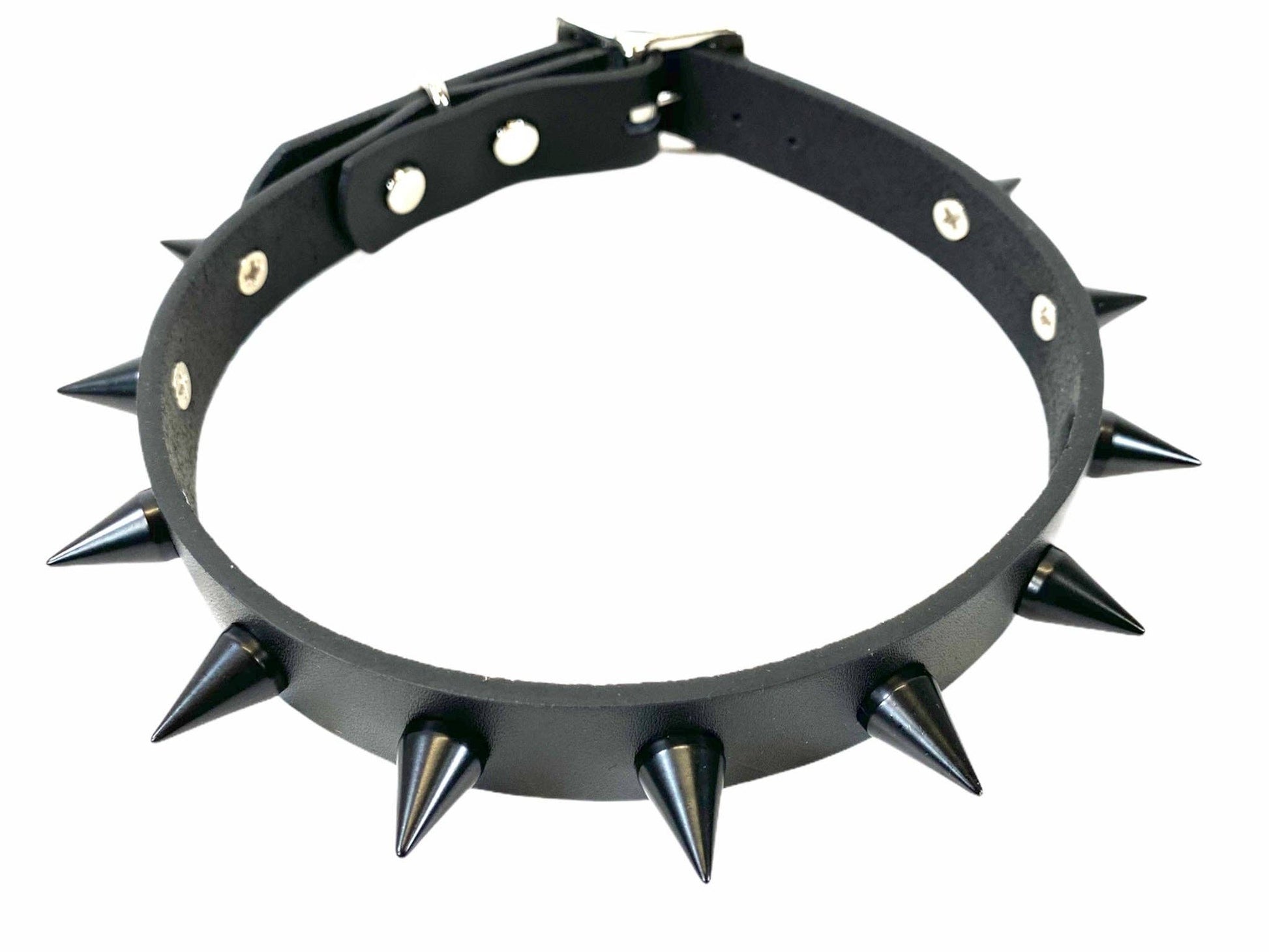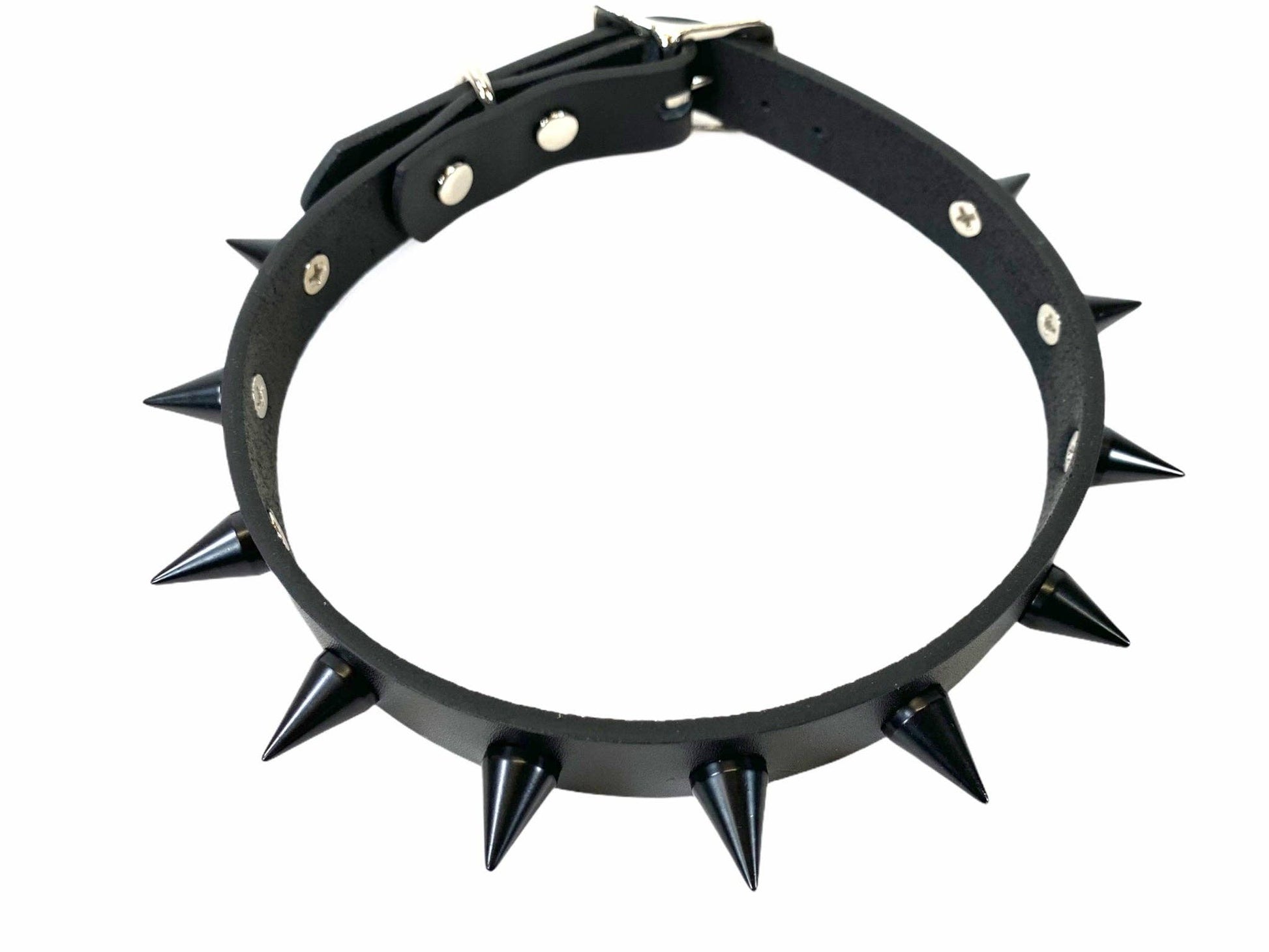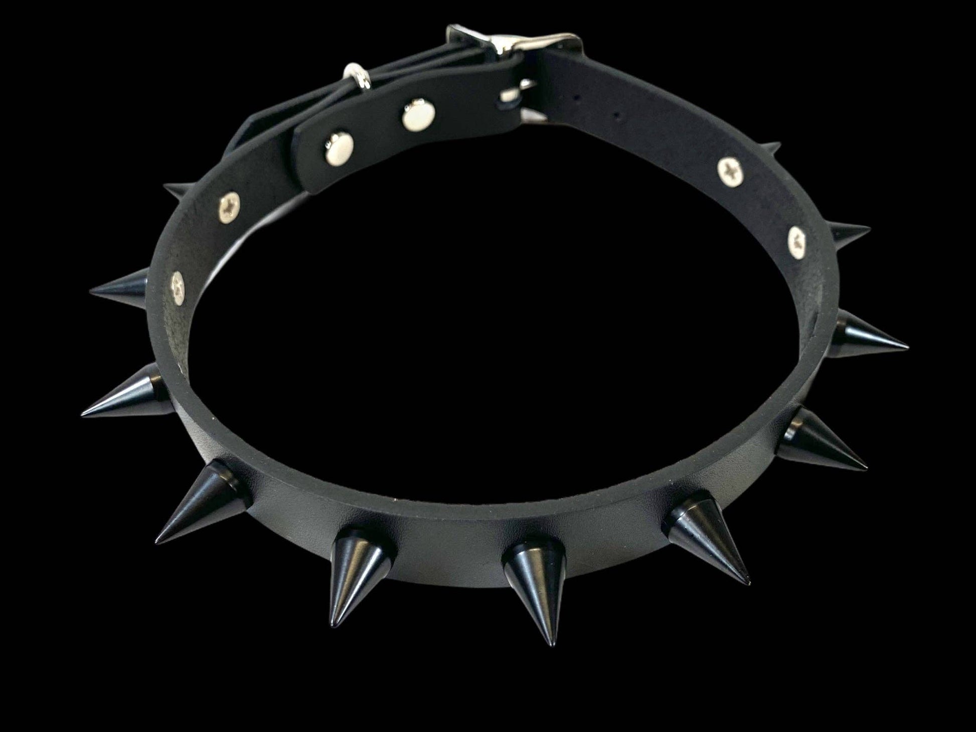 3/4" BLACK LEATHER CHOKER WITH SMALL CONE SPIKES