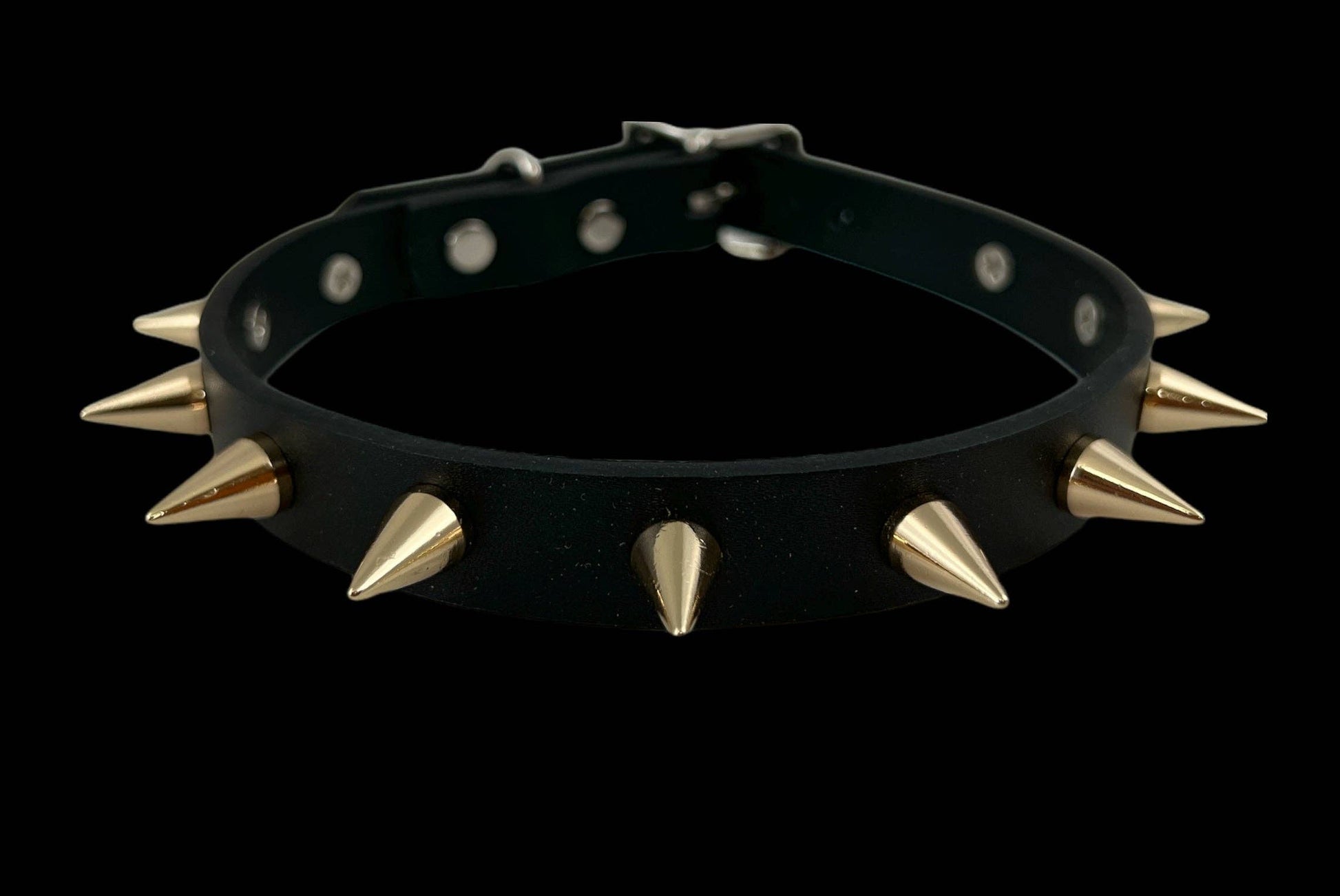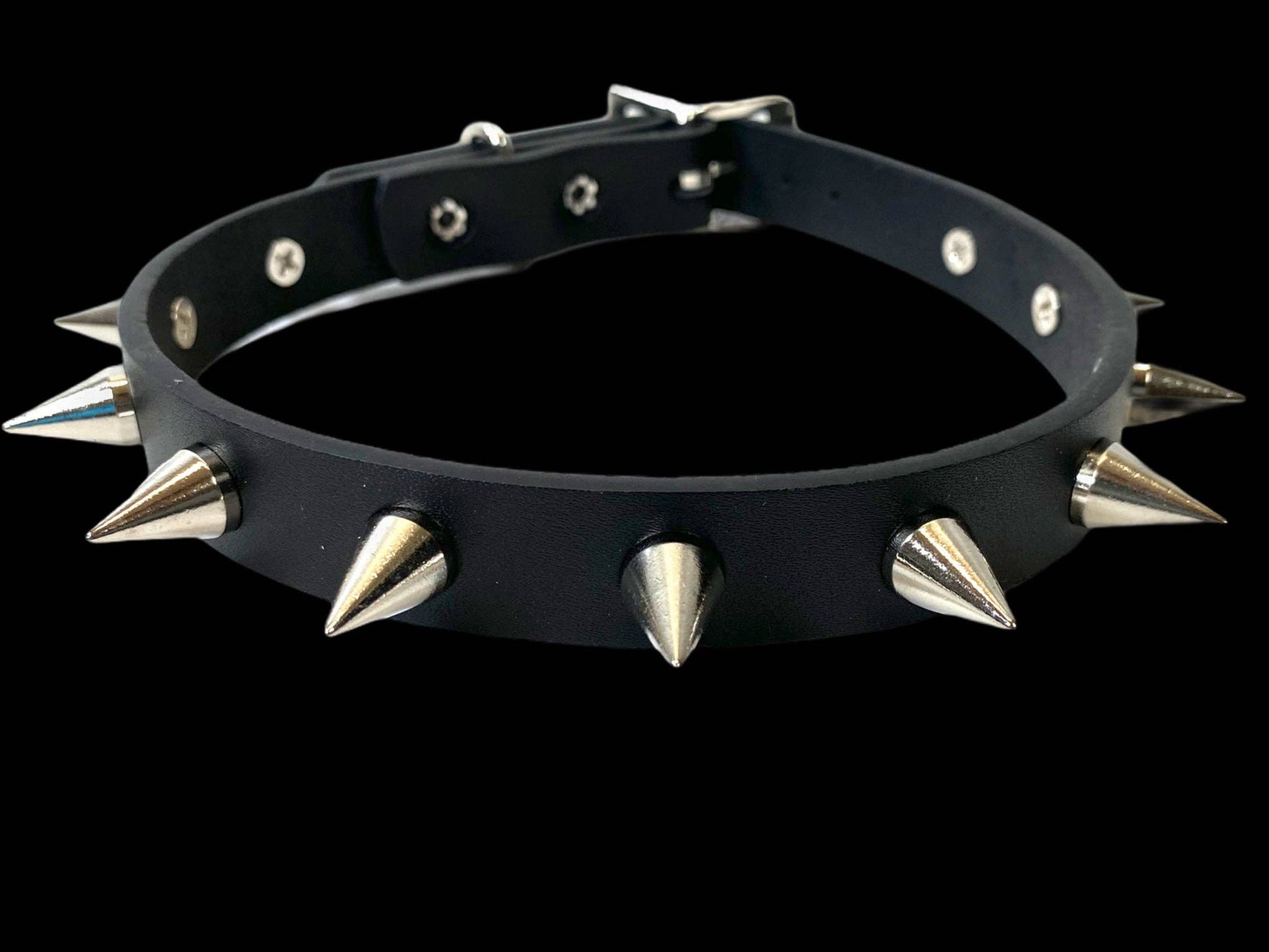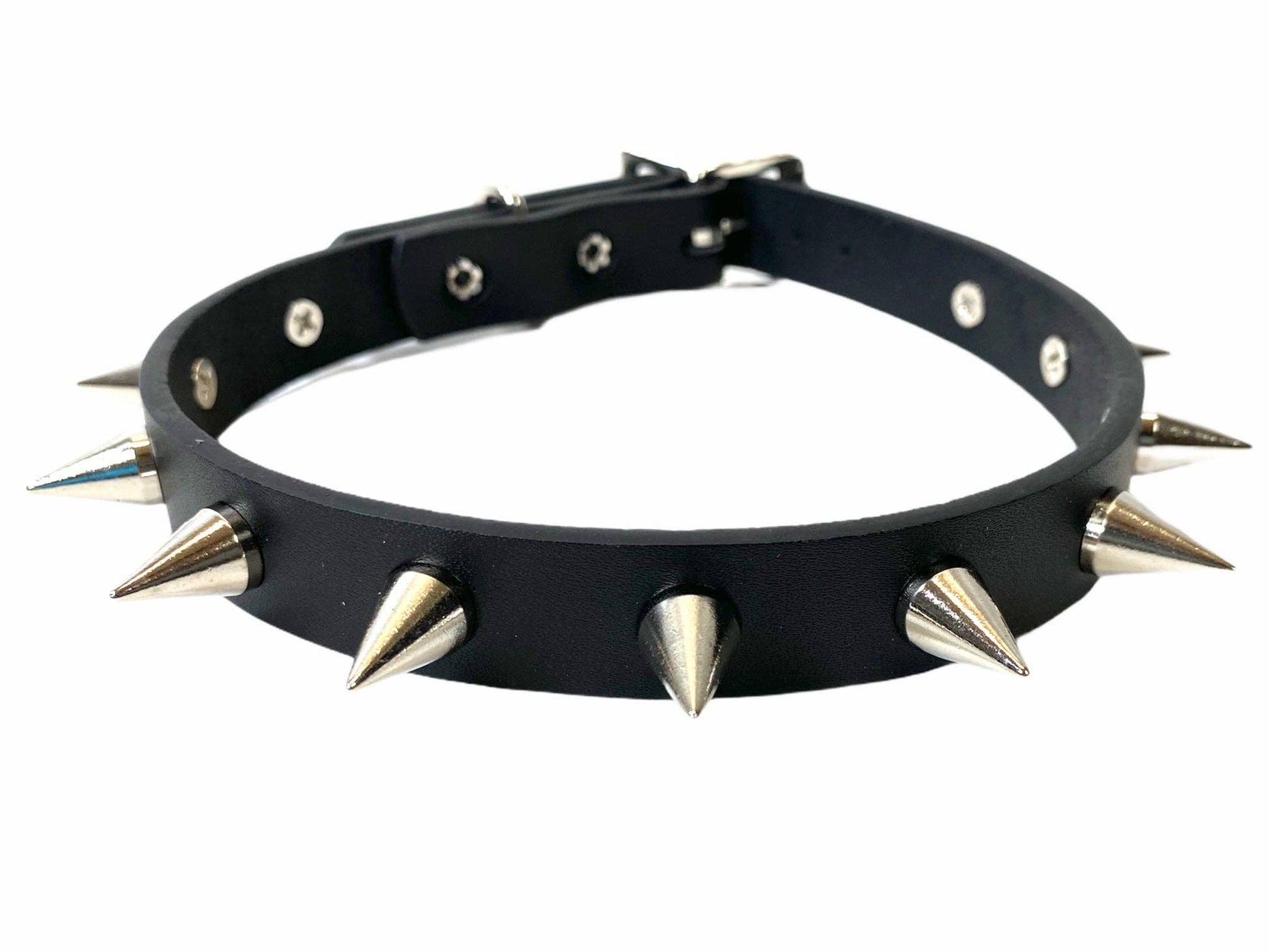 3/4" BLACK LEATHER CHOKER WITH SMALL CONE SPIKES